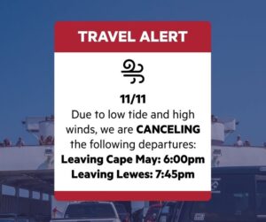 Oct 2025 31 ‼️Travel Update: Thursday, October 30th & Friday October 31st, 2025 Cape May - Lewes FerryRead More