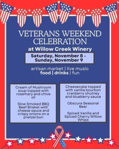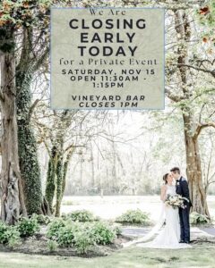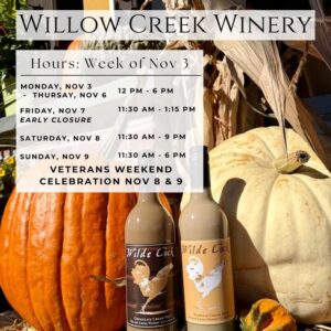 Nov 2025 15 Heads up, friends — we’re closing early today for a private event Willow Creek WineryRead More